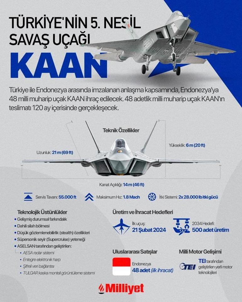 MİLLİYET.COM.TR “Türkiye’nin KAAN programı, yükselen orta güçlerin bağımsızlık ve kendine yeterlilik için çabaladığı küresel bir eğilimi temsil ediyor” ifadelerini kullanan The National Interest savunma ve ulusal güvenlik yazarı Harrison Kass, Türkiye’nin beşinci nesil savaş uçağı KAAN, Ankara’’nın bugüne kadarki en iddialı havacılık girişimi. Amerikan yapımı General Dynamics F-16 Fighting Falcon filosunun yaşlanmasıyla birlikte bu uçakların yerini almak üzere geliştirilen KAAN, Türkiye’yi yerli üretim beşinci nesil savaş uçağına sahip ülkeler arasındaki küçük gruba yükseltecek” ifadelerini kullandı.